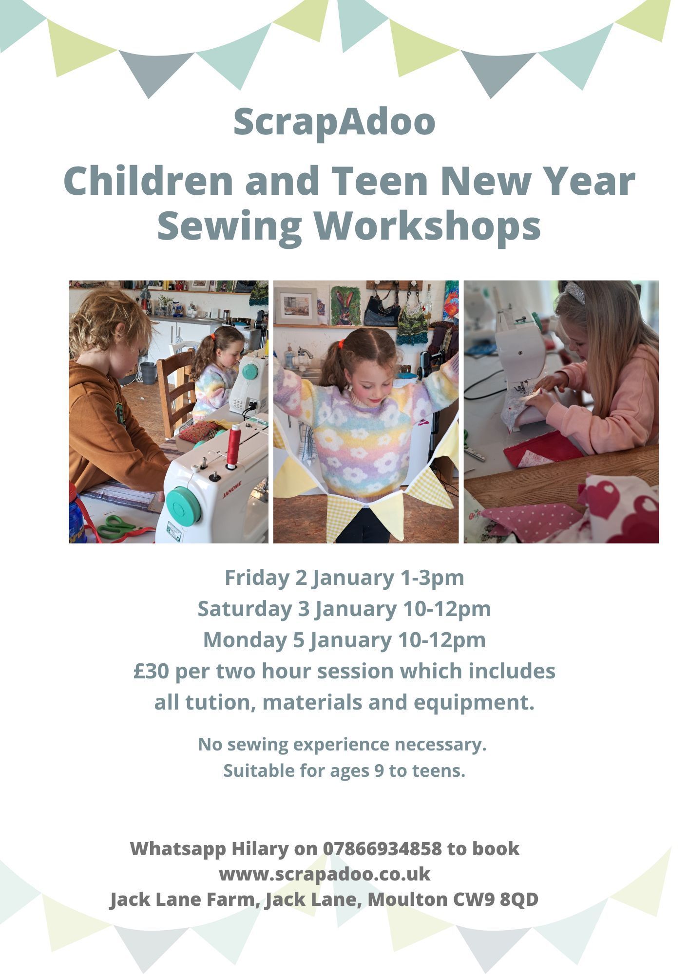 Scrapadoo sewing and Craft Workshops Christmas 25 and January 26
